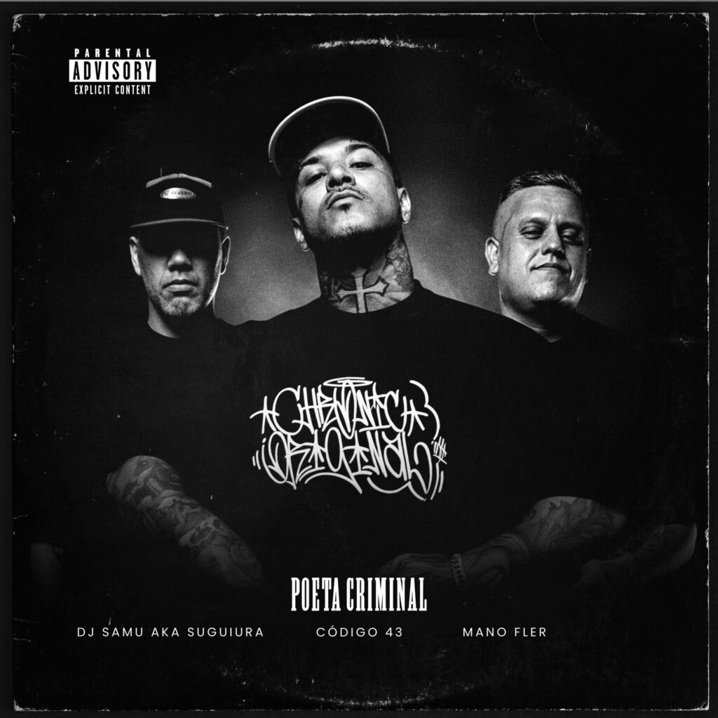 O trio paranaense Mano Fler, Pateta Código 43 e DJ Samu (aka Suguiura) iniciou 2026 com o lançamento do aguardado álbum “Poeta Criminal”. O projeto chega com força total e reafirma a tradição do rap de rua, trazendo letras cruas que refletem a realidade das periferias. Além disso, aborda sofrimento, frustrações, vidas marcadas pelo sistema prisional e perdas causadas pela violência policial. Assim, o disco mostra um olhar direto sobre o cotidiano à margem.